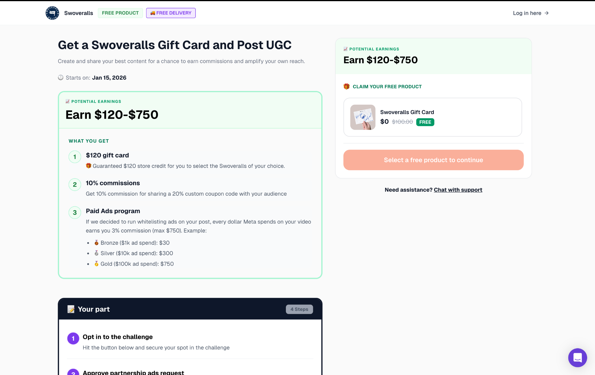 This is the program that changed everything for Swoveralls. The model is straightforward: creators receive $120 in Swoveralls store credit, and in exchange, they commit to filming a piece of UGC content.