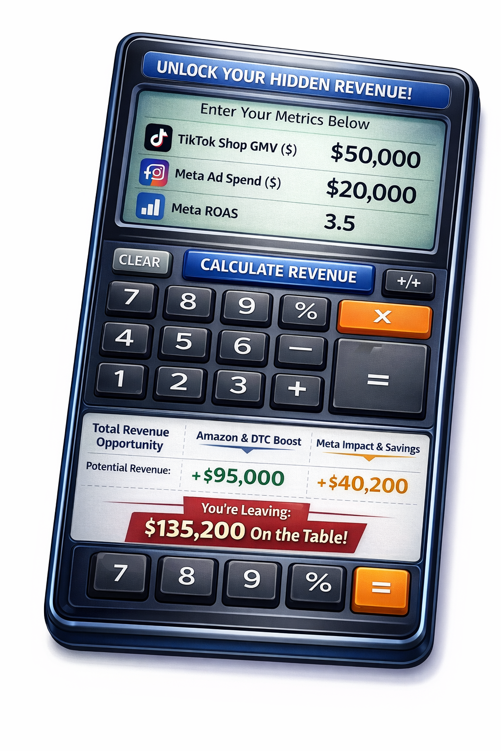 Calculate the revenue you're leaving on the table with TikTok Shop. Discover halo effects, Meta lift & creative savings.